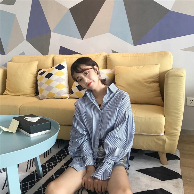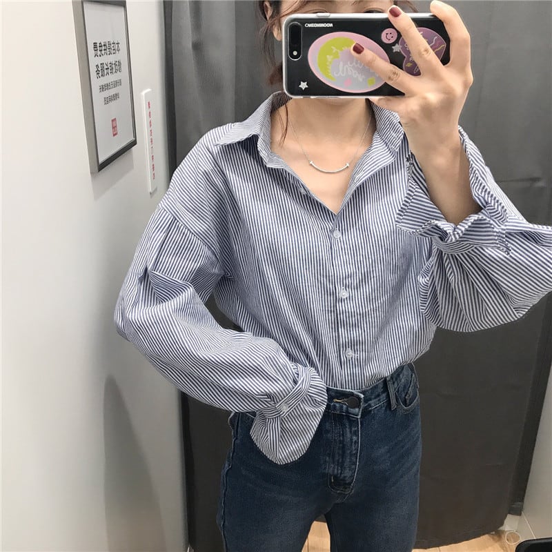 ボリューム袖 ストライプ柄 ビッグスリーブシャツ kk31