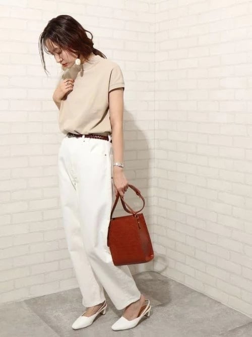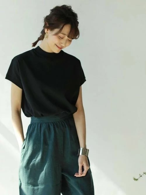 大人っぽく上品に着られるハーフハイネックTシャツ。