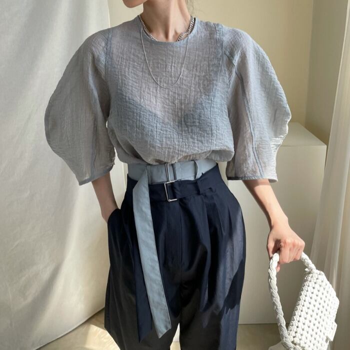 透け感が今年らしいパフスリーブブラウス。