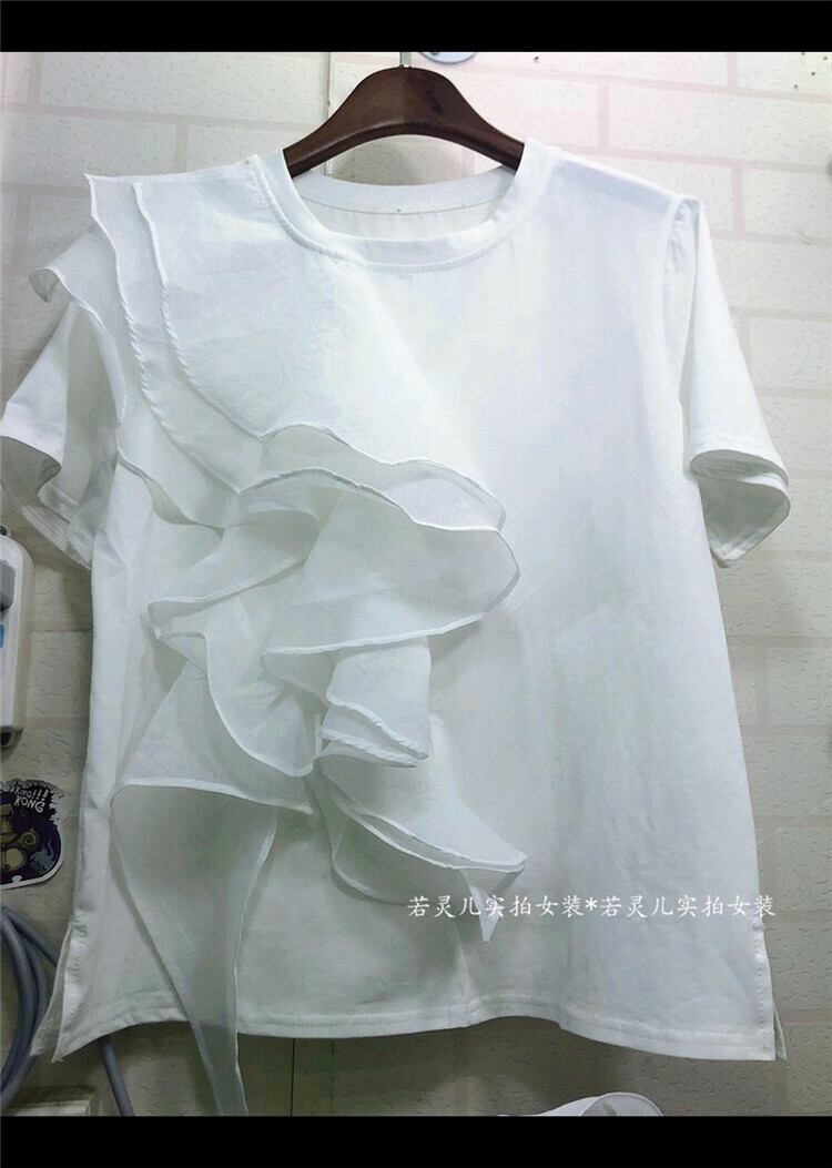 フリル Tシャツ 半袖 無地 アシンメトリー カジュアル フェミニン ラウンドネック ゆったり aya3565
