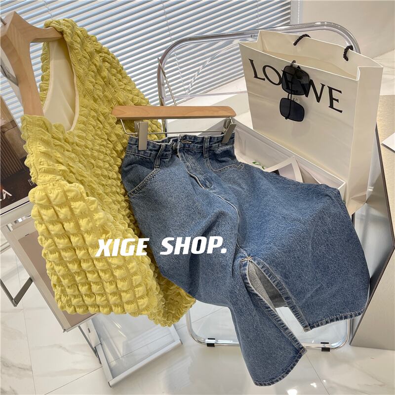 デニムなどカジュアルなアイテムと合わせても女性らしく仕上がります♡