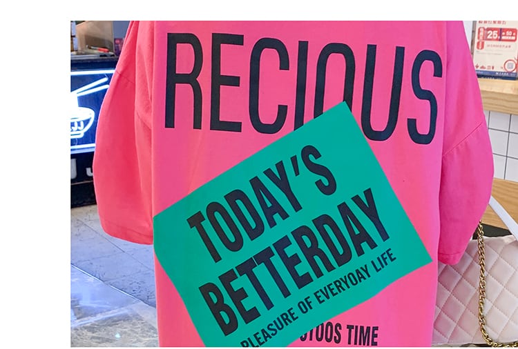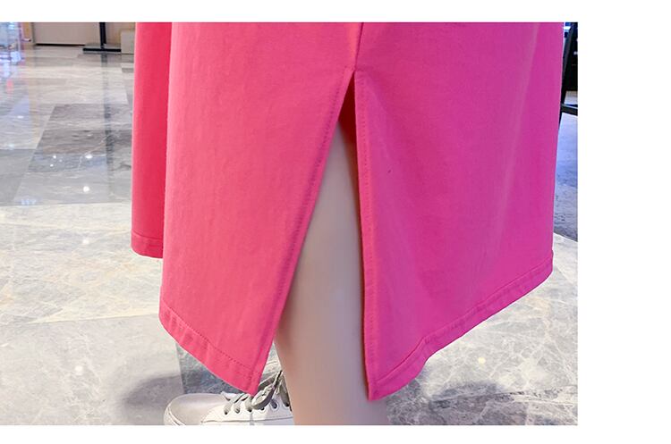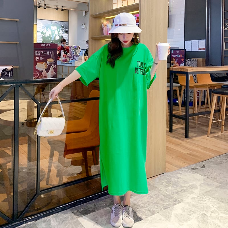 半袖 Tシャツワンピース ロング ルーズ ラウンドネック スリット ネオンカラー ロゴ カジュアル コットン リラックス aya3599
