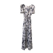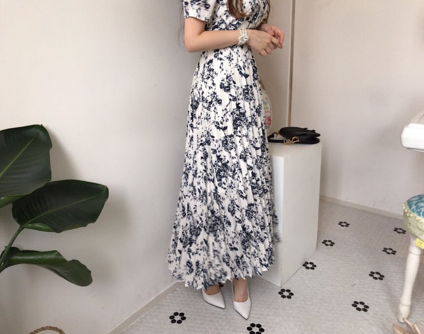 モノトーンの花柄が上品なロングプリーツワンピース。