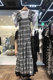 ショルダーフリルが可愛いチェック柄ティアードワンピース。