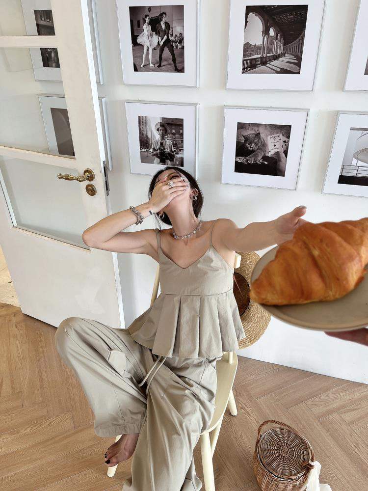 ダボッとしたルーズなシルエットが可愛いリネンセットアップ。