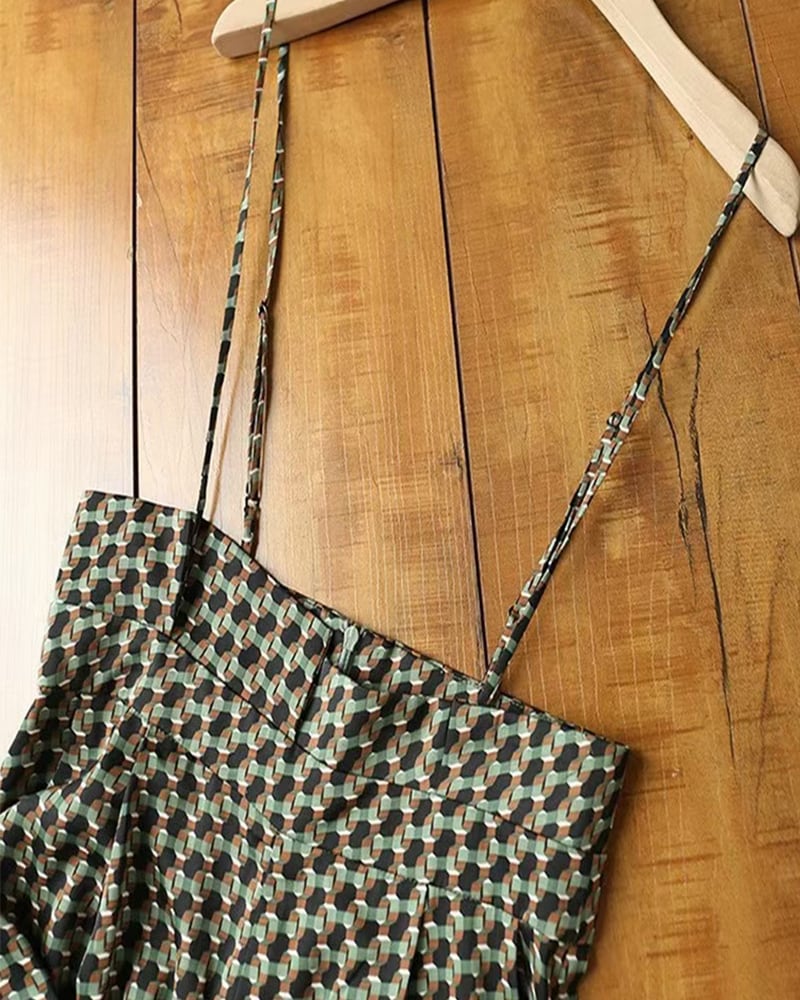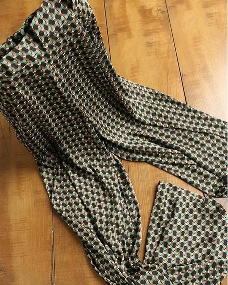 レトロ柄 サロペット ワイドパンツ ロング 大人 エレガント ハイウエスト ストレート カジュアル オフィス aya3648