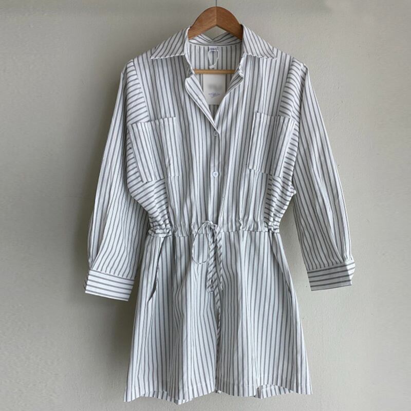 ストライプ柄 シャツ サロペット ショートパンツ コットン カジュアル 長袖 シンプル 春 秋 大人 上品 aya3656