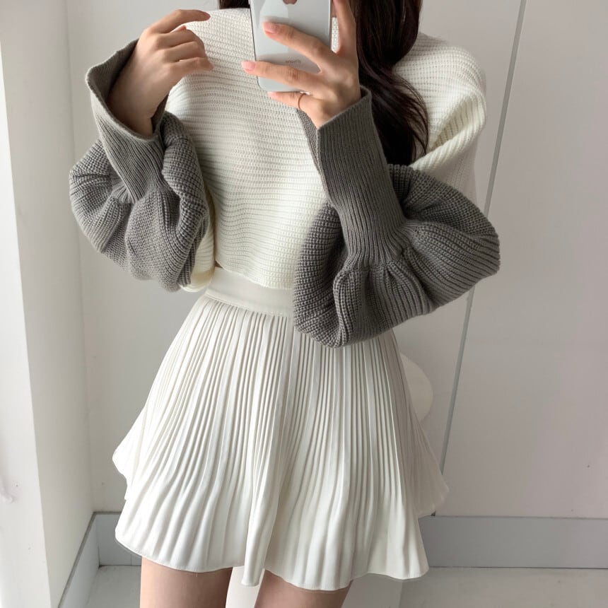 ボリュームたっぷりの袖&袖口のスリットがポイントになったニットトップス。