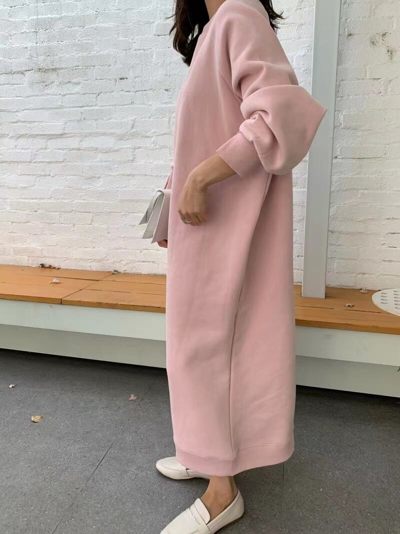 ゆったりラクな着心地のスウェットロングワンピース。