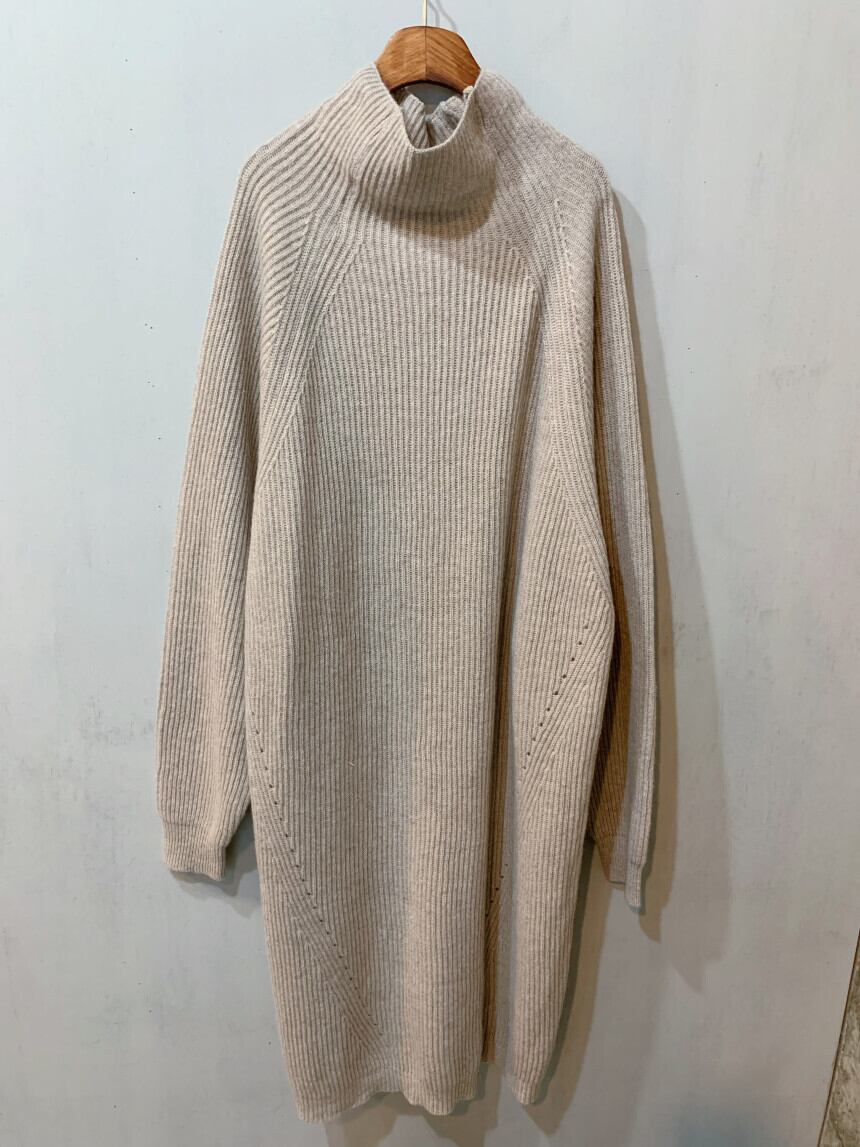 ボディラインを拾わないリラックスムード高まるロングニットワンピース。
